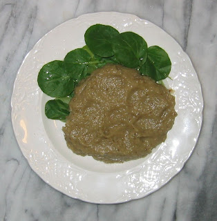 - While the eggplant is roasting, slowly sweat the onion in the olive oil over a low flame in a covered pan. You can add a dash of cumin and/or cumin (optional). Once the onions are very soft, remove the cover and continue cooking on a low flame until they are slightly carmelized. (See picture.) Remove from heat and cool.